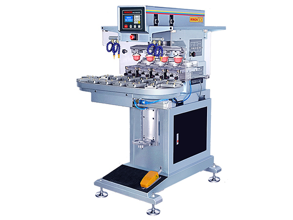 这种移印机结构最简单,人工将产品放在工作台上,脚踩一下自动印刷好后人工将产品拿下来。当然,这种机器一般不会出现在印刷量比较大的企业,在很多小企业和印刷量较小的企业应用却比较多。其缺点非常明显,如生产效率低,不过其操简便、投资小,所以在市场上仍然很活跃。