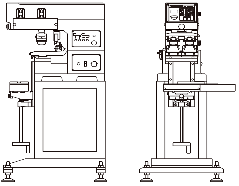 双色直推式和转带式工作台主体部件采用铸铝合金制造,选用优质合金加工,精密气动元件驱动滑台来回穿梭,性能稳定可靠、移动精确、套位印刷效果出色。适合于一般尺寸工件双色套色印刷。