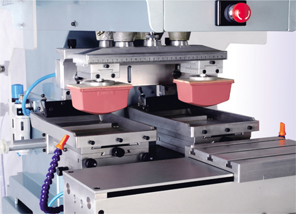 双色直推式和转带式工作台主体部件采用铸铝合金制造,选用优质合金加工,精密气动元件驱动滑台来回穿梭,性能稳定可靠、移动精确、套位印刷效果出色。适合于一般尺寸工件双色套色印刷。