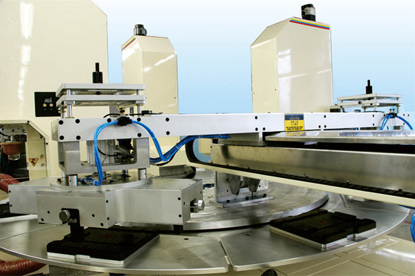 ●本机由三台荣龙WN125TE1移印机组成,三台机器可作横向和纵向调节。印刷工作台采用8工位超精密型分割器转盘工作台,定位精确印刷速度快,且套色精度高。●该机采用油盅式,钢板前后推出及胶头上下均为伺服马达及波珠丝杆驱动,且在粘墨、清洗胶头、印刷位置可自由调节。