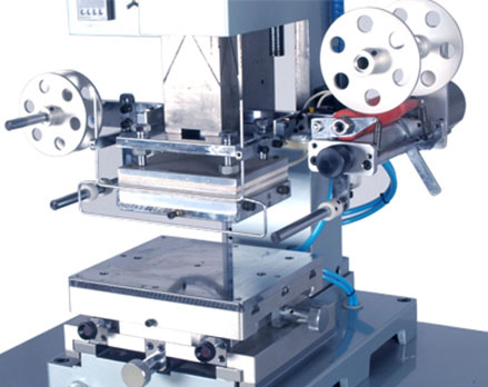 瓶盖、化妆盒、匙扣、笔杆及各式商标印刷平压式液压型自动烫印机。